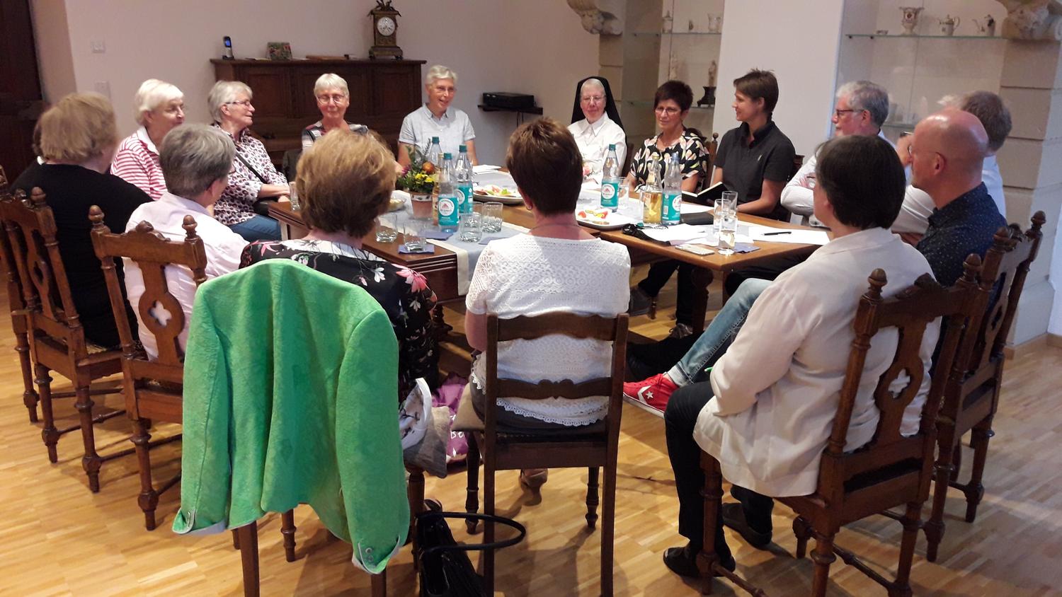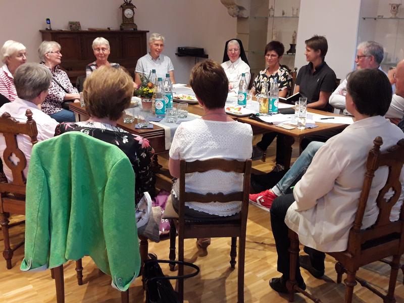 Beim Imbiss entwickelte sich schnell ein reger Austausch über Neuigkeiten aus dem Kloster und dem Alltag der Anwesenden. Anschließend wurden die nächsten Veranstaltungen geplant: Die Eucharistiefeier mit anschließendem Frühstück am Hochfest des Hl. Michael am So., 29.9., um 10 Uhr in unserer Klosterkirche; die geistliche Stunde am 1. Adventssonntag, 1.12., um 17 Uhr, die in der Begegnung bei Plätzchen und Glühwein ausklingt.