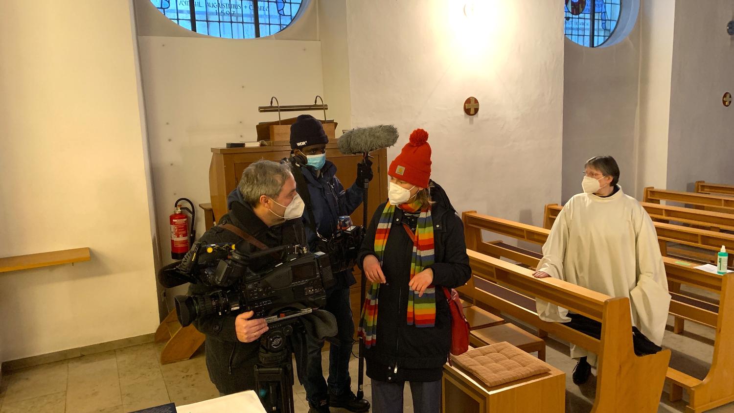 Am 12. Februar war ein Team des Westdeutschen Rundfunks bei uns im Kloster, um sich zu informieren, wie wir die Corona-Pandemie erleben. Alltagssituationen wurden live aufgenommen, Schwestern kamen in Interviews zu Wort und auch der gegenseitige Austausch über verschiedene Berufe und Berufungen kam (bei abgeschalteter Kamera) nicht zu kurz. Wir freuen uns über das Interesse an unserer Lebensform und danken dem Team für das gelungene Miteinander.