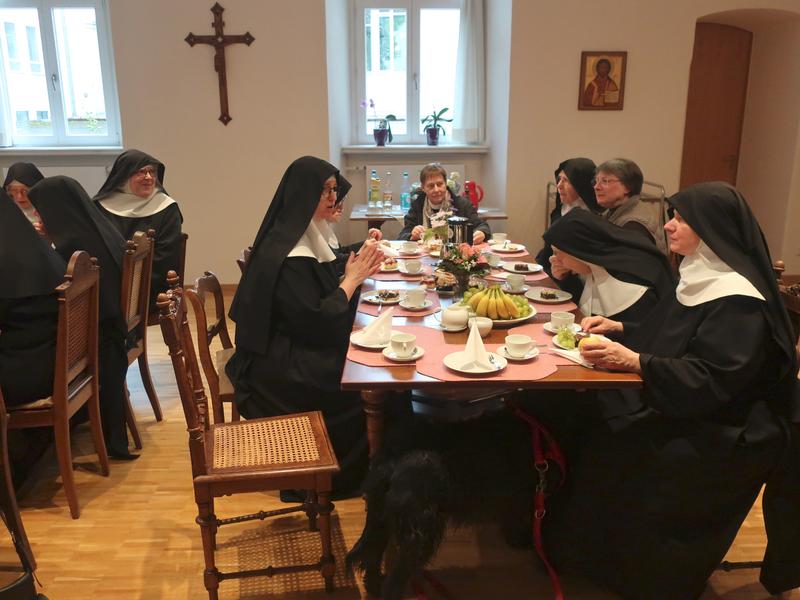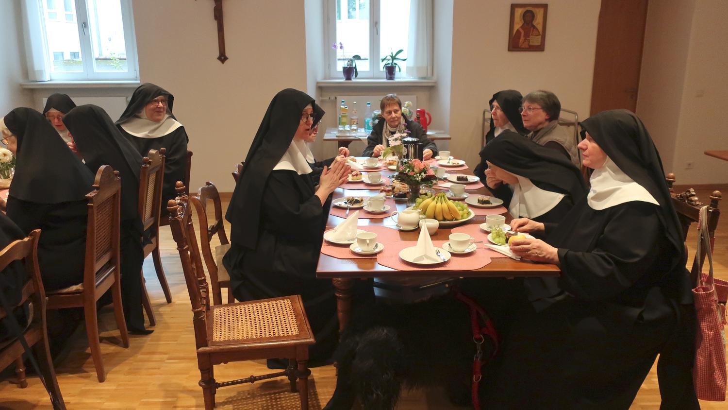 14 Benediktinerinnen der Abtei zur Hl. Maria in Fulda samt Klosterhund Momo besichtigten unser Kloster.