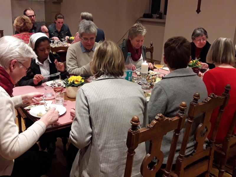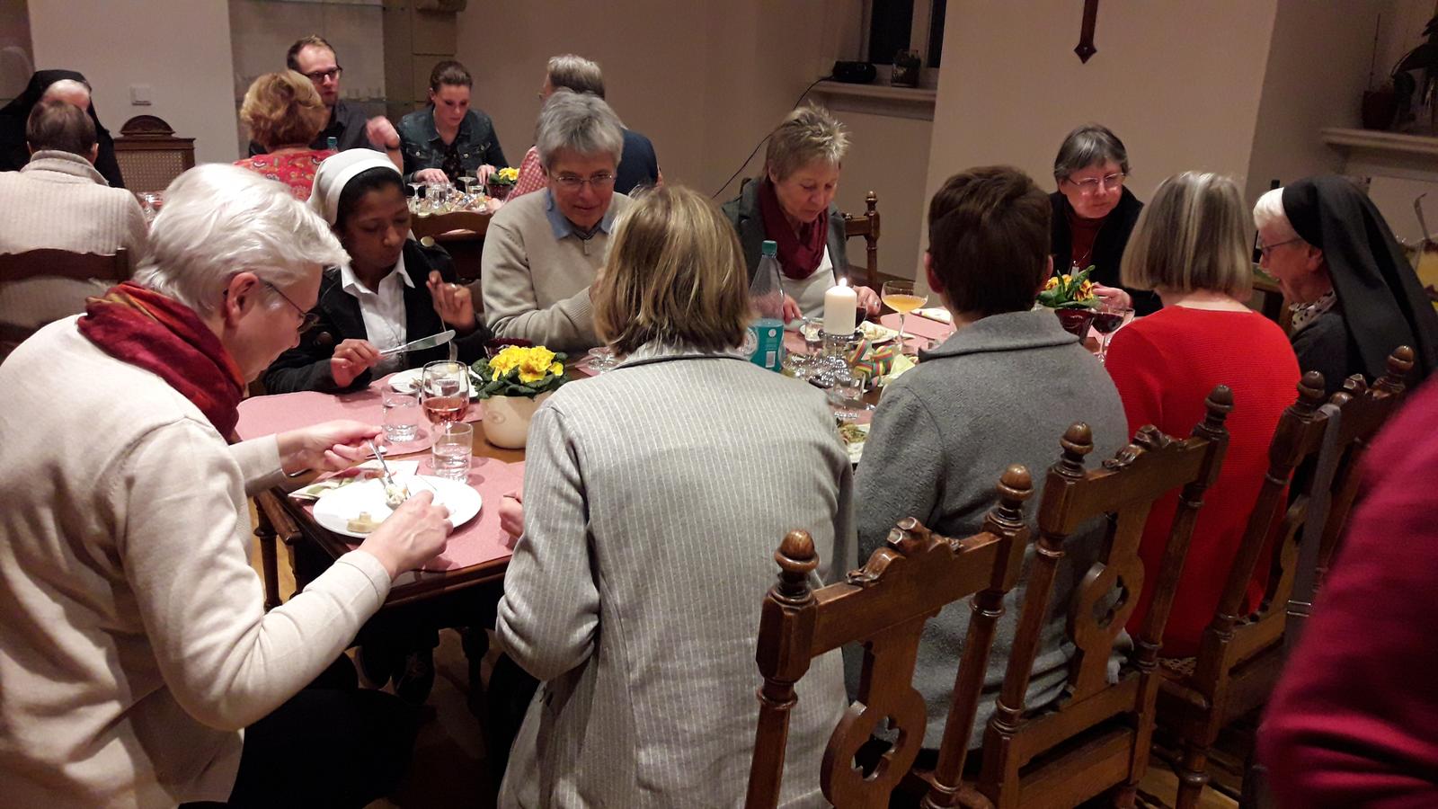 Nunmehr zum 28. Mal lud das Kollegium der Realschule uns Schwestern am “Veilchendienstag” zum Abendessen ins Gästerefektorium ein. Jede/r hatte eine lukullische Spezialität mitgebracht und so kam wieder ein abwechslungsreiches Buffet zustande – es ist jedes Jahr wieder eine Freude, die schön zubereiteten Speisen zu bewundern und anschließend bei guten und anregenden Gesprächen zu genießen. Wir danken allen für dieses Zeichen der Verbundenheit.