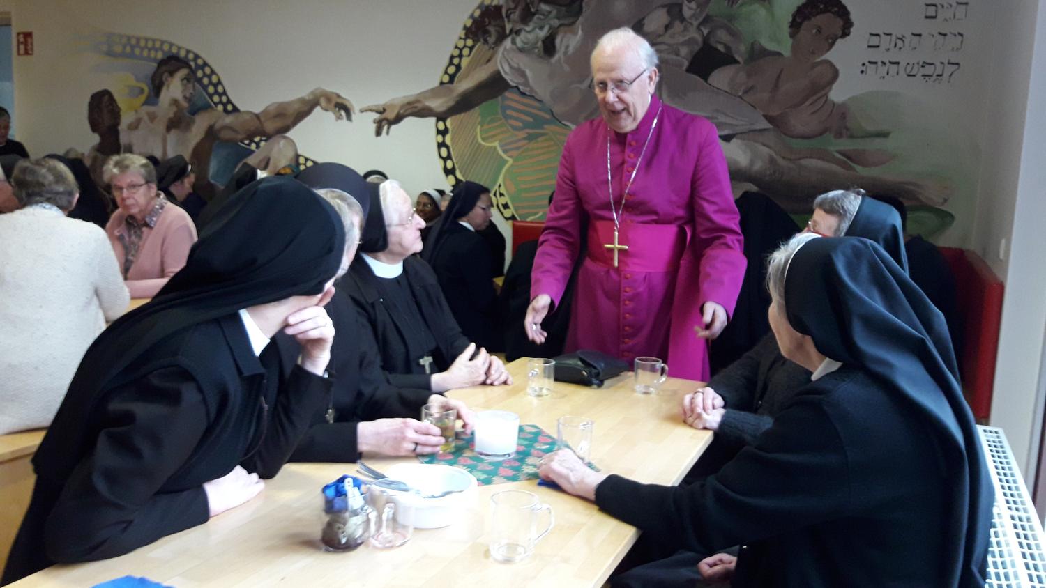 Nach dem Pontifikalamt trafen sich die Ordenschristen im Michaelskloster zum Gespräch bei einem schmackhaften Mittagsimbiss. So konnte das geistliche Feiern der Begegnung weiterklingen im regen Austausch miteinander.