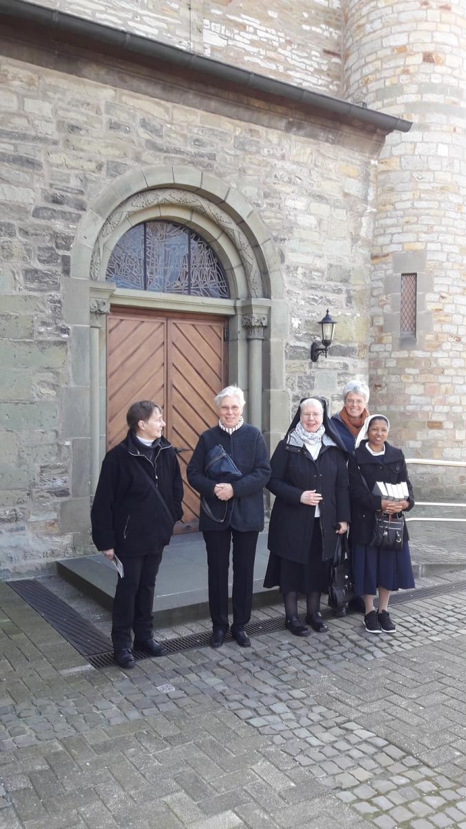 Am Sonntag, dem Vortag ihres Namenstages, lud Sr. M. Ancilla alle Schwestern zu einer Wallfahrt zur “Mutter der göttlichen Gnade” in Lippstadt-Bökenförde ein. Leider krankheitsbedingt nicht vollzählig machten wir uns auf den Weg zur romanischen St. Dionysius-Kirche, in der das Gnadenbild steht. Dort feierten wir gemeinsam eine Andacht mit Gesang, Gebet und Stille. Schön war, dass sich unserem Gebet zwei Gemeindemitglieder anschlossen, die gerade in der Kirche waren.