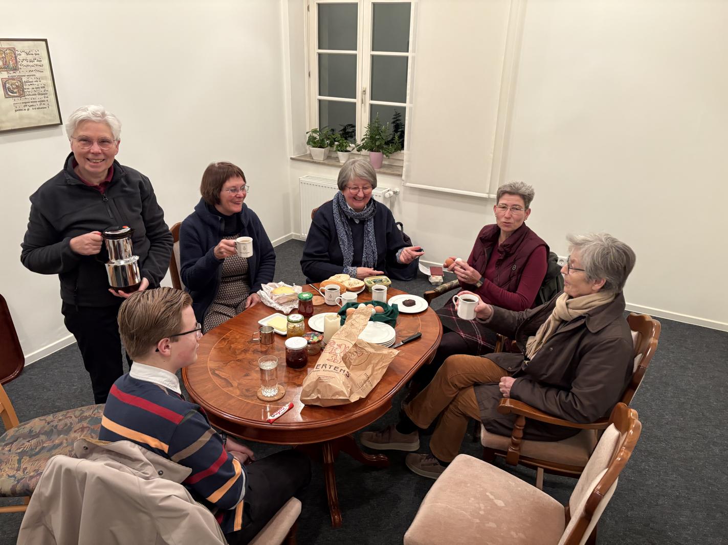 Seit mehr als 25 Jahren gibt es ihn schon, den „Frühaufstehergottesdienst“ – jeden Freitag in der Schulzeit um 6:45 Uhr. Neue geistliche Lieder geben dieser Eucharistiefeier ein besonderes Flair. Und im Anschluss daran bleibt immer noch genügend Zeit für ein gemeinsames Frühstück in der Cafeteria, bevor es in die Schule oder sonst irgendwo an die Arbeit geht.